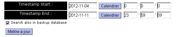 Afin de ne pas surcharger le serveur TDS, les anciennes données du fluorimètre sont archivées dans une deuxième base de données : base d'archive. Normalement, on ne peut voir que 3 mois de données du fluorimètre. Pour exporter des données plus anciennes, choisissez les dates correspondantes et sélectionnez "Search also in backup database"